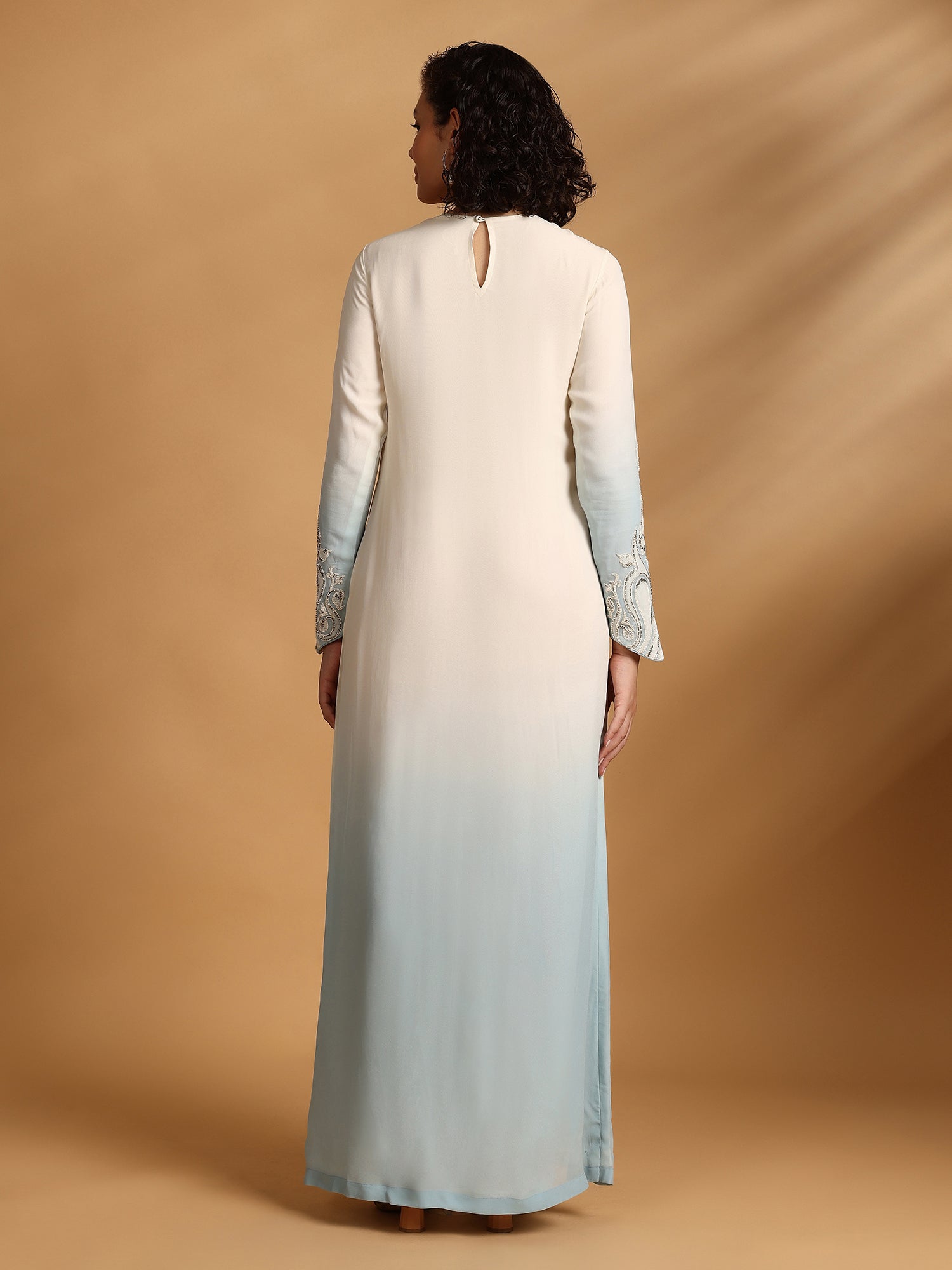 Ombre Kaftan Dress With Intricate Hand Embroidery And A Slit Detail