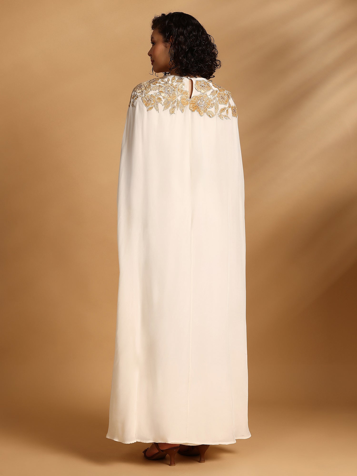 Maxi Dress With Intricate Hand Embroidery And Back Cape Detail