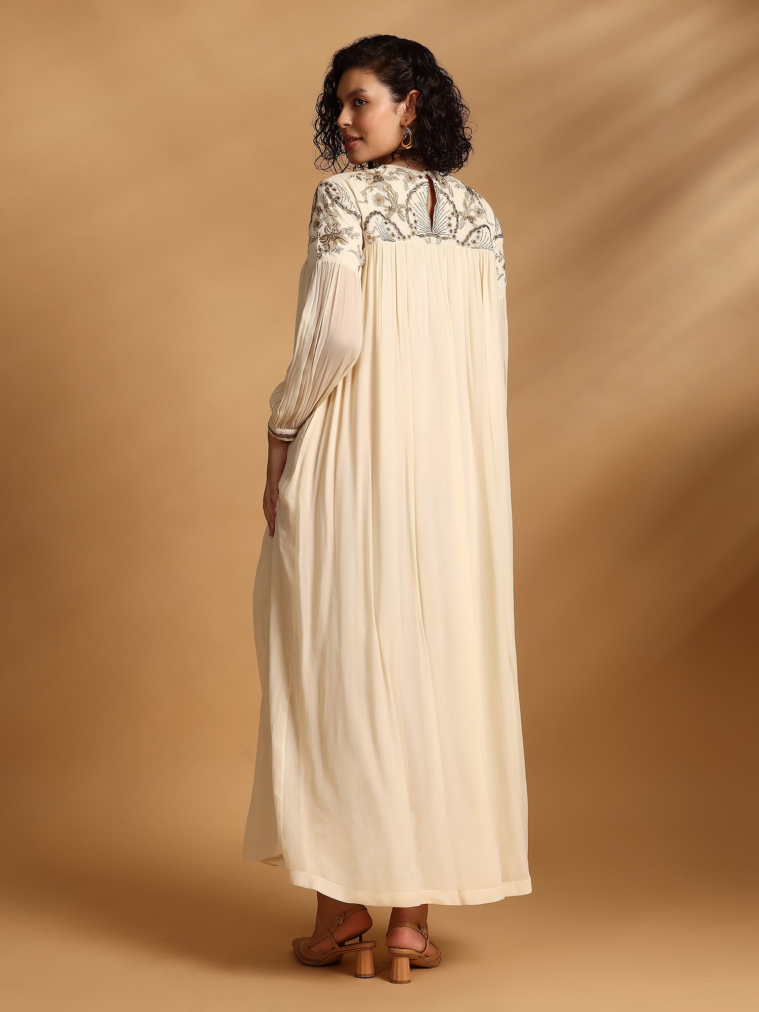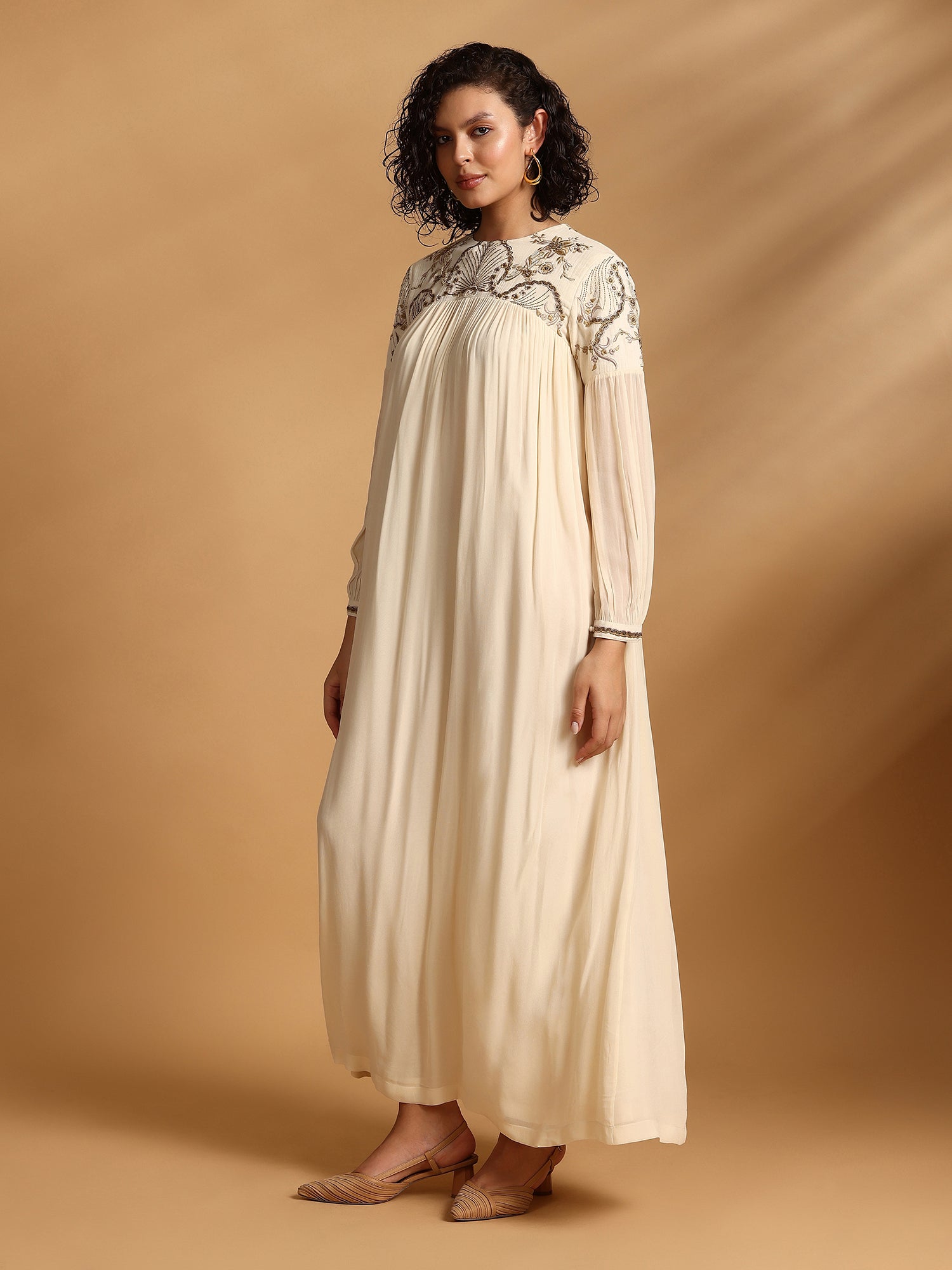 Maxi Dress With Intricate Hand Embroidery On Yoke And Pleat Details