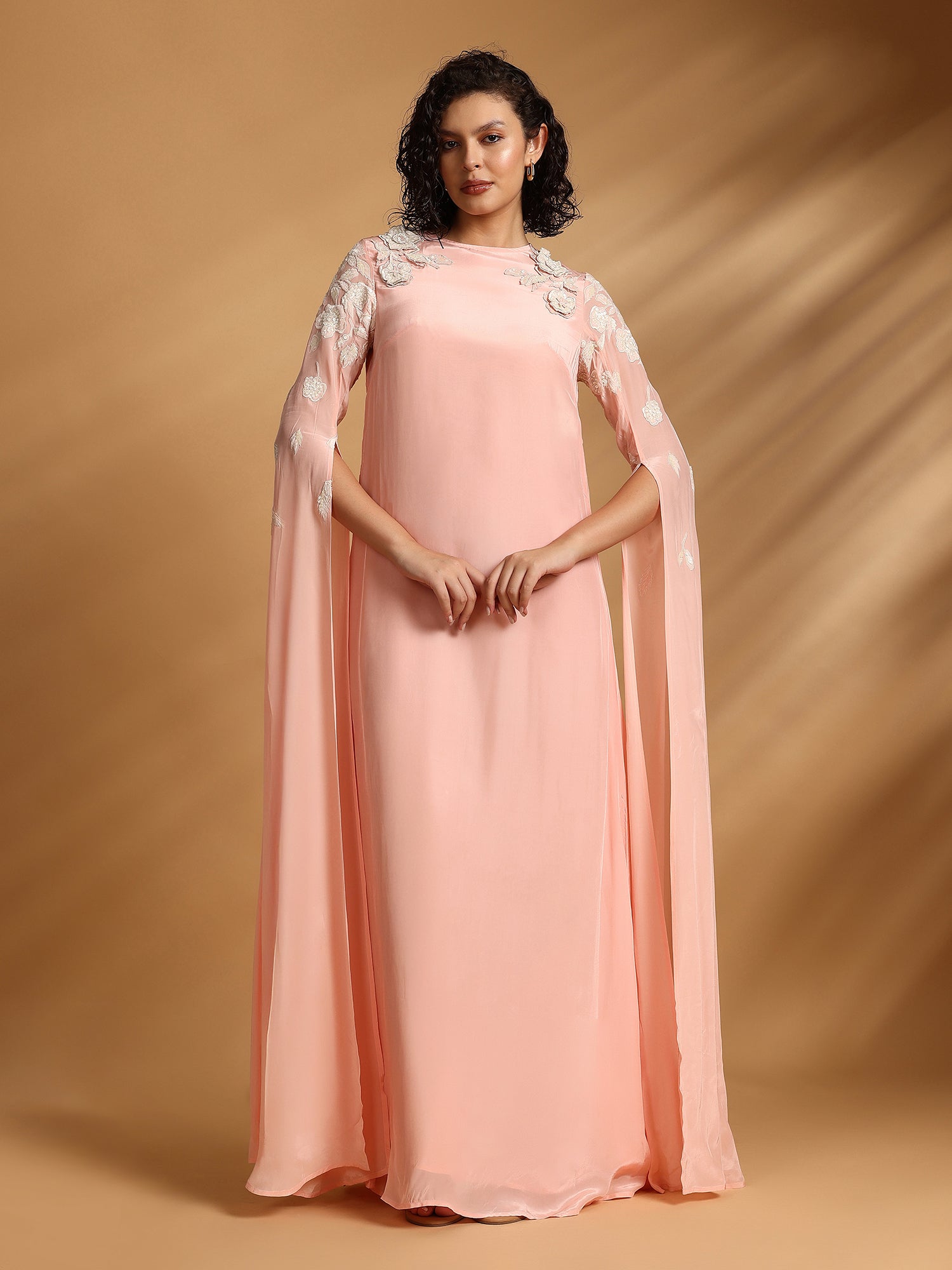 Maxi Dress With Intricate Hand Embroidery And Tippet Sleeve With Slit